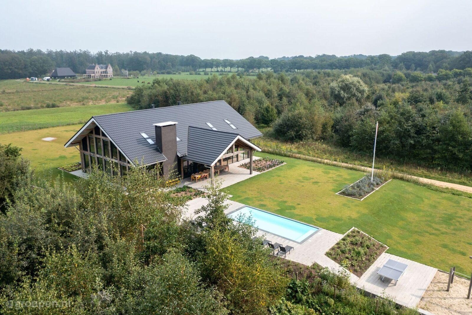 Gek op luxe? Dan is deze vakantievilla voor maximaal 20 personen in Aalten een geweldige keuze voor jou! Geniet van de rust, ruimte en de fantastische faciliteiten. Zo kun je gebruik maken van de openhaard bij de kampvuurplaats of genieten van een diner met uitzicht over het gehele landgoed. Na je workout in de aparte fitnessruimte nog even de sauna in? Ook dat kan! De accommodatie beschikt namelijk over een wellnessruimte. En dat is nog niet alles, want de villa heeft zelfs een eigen verwarmd zwembad in de tuin én op 5 km afstand een binnenzwembad. Tijdens je verblijf de omgeving verkennen? Dit is ontzettend leuk om per fiets te doen. De villa is namelijk gelegen tussen Aalten en Winterswijk midden in de Achterhoekse natuur. Hier ontdek je het geweldige coulisselandschap én word je verwelkomd door koeien, vogels en reeën.