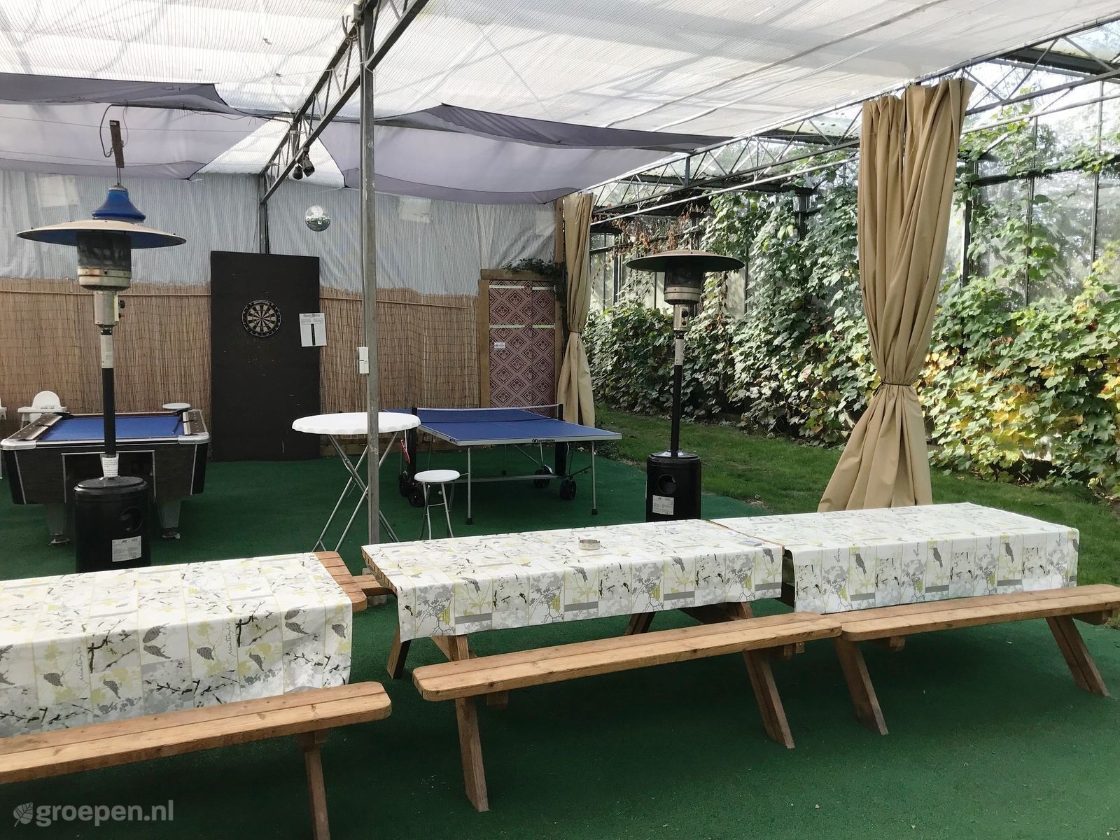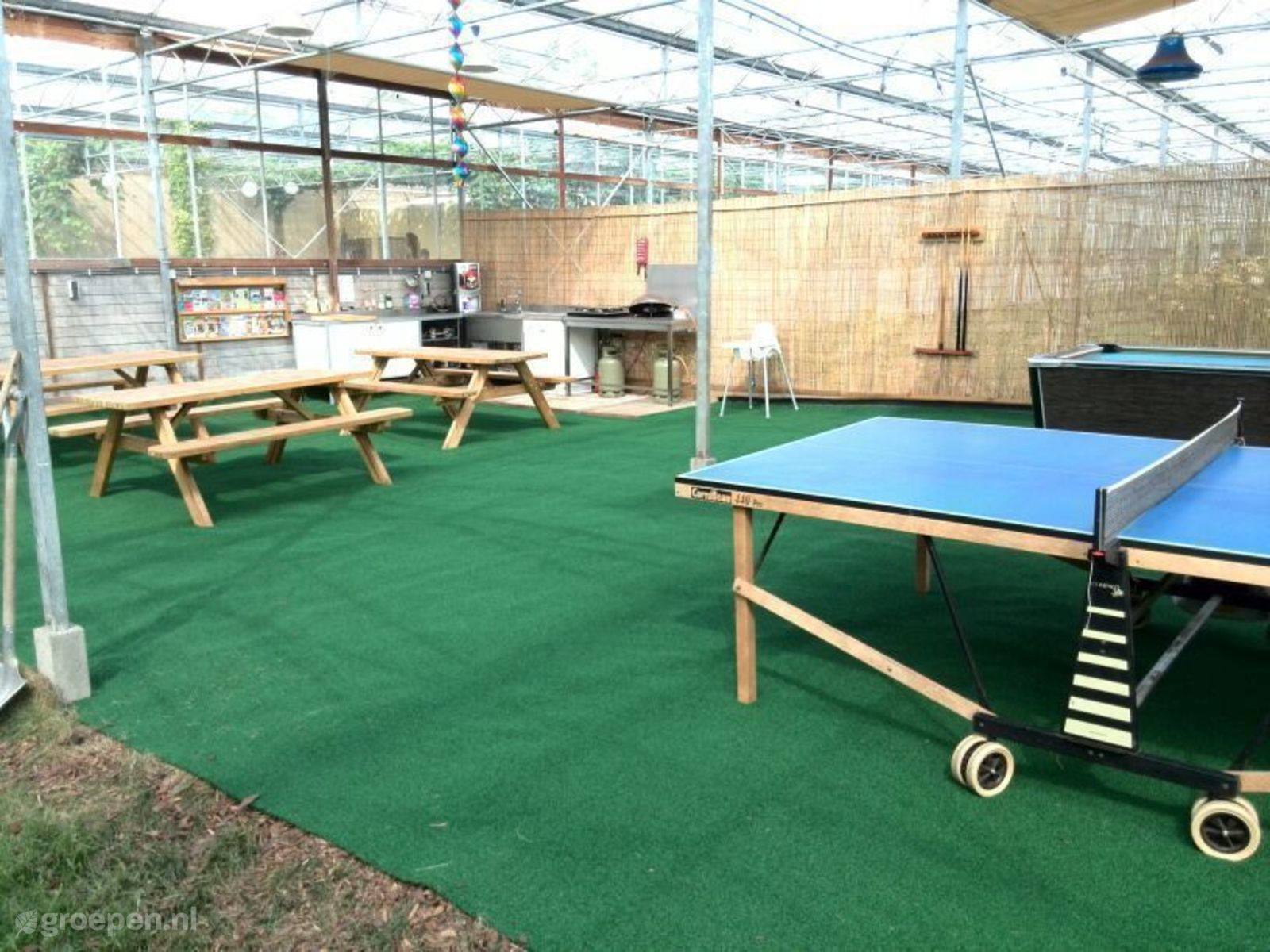Groepsaccommodatie Lutjebroek Onze accomodatie bestaat uit 5 grote 4 persoons safaritenten die naast elkaar staan in onze bloemenkas! De gevel aan de noordkant is geheel verwijdert zodat er glazen afdak is ontstaan.
