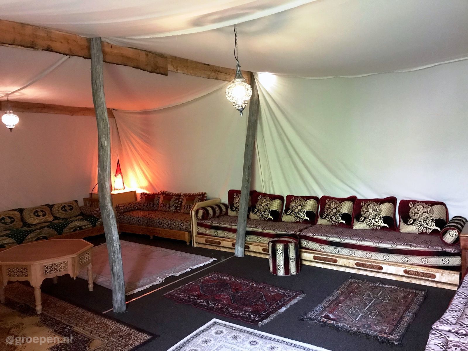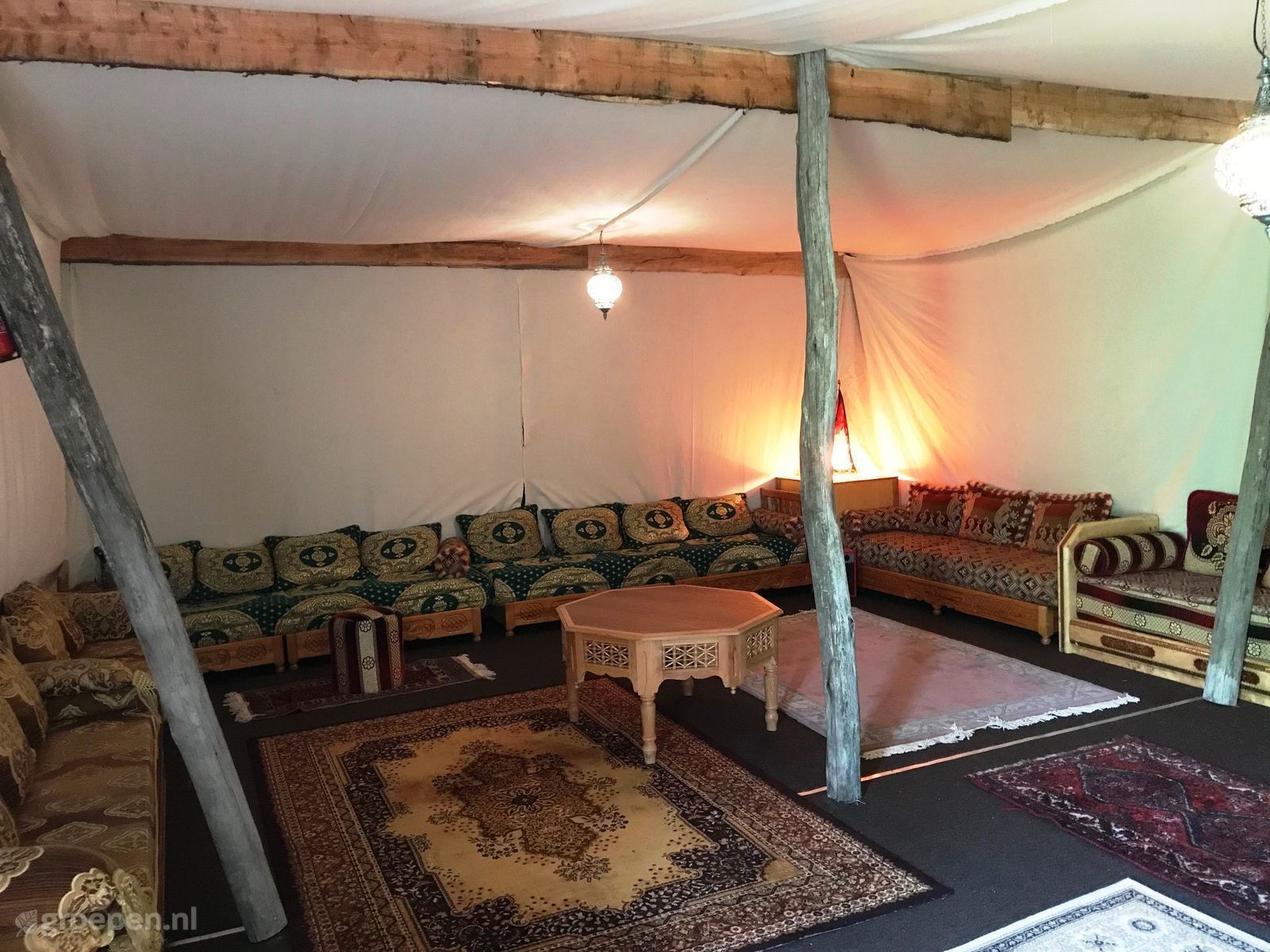 Voor degenen die gek zijn op het buitenleven is glamping in een natuurhuisje een absolute aanrader! Deze groepsaccommodatie in Noord-Holland bestaat uit vijf grote 4 persoons safaritenten. De glampingtenten beschikken over een eigen steiger/terras met tuinset aan het water. Beleef veel plezier in de grote sfeervolle oosterse tent, waar je muziek kunt luisteren en gewoon lekker samen met elkaar kunt zitten tot diep in de nacht. Je kunt ook heerlijk een bootje varen voorzien van koelbox. Deze zijn gratis. In de gemeenschappelijke ruimte is een pooltafel, tafeltennis, trampoline, springkussen en whirlpool aanwezig. Kies voor een natuurhuisje huren in de vorm van glamping en wij wensen je heel veel plezier in jouw groepsaccommodatie in de natuur!
